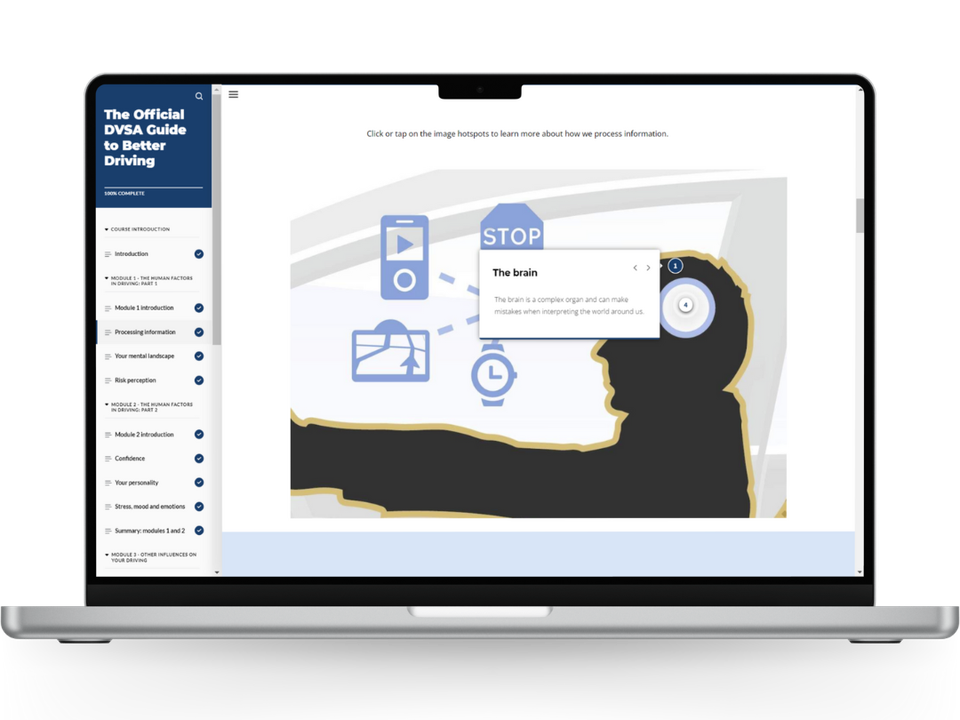 You can access all official DVSA e-learning in a way that works for you, whether on desktop, mobile device or tablet.